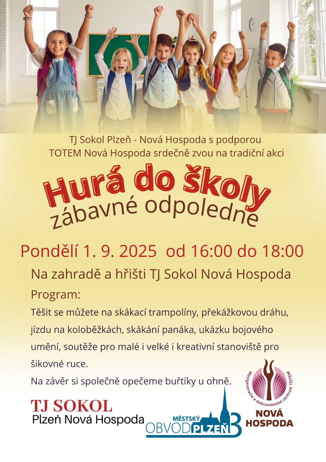 První trénik 1.9. jako Hurá do školy Cvičit začínáme v pondělí 1.9.2025. Dospělácký i dětský trénink proběhnou na zahradě Sokola v rámci akce Hurá do školy od 16:00 do 18:00.